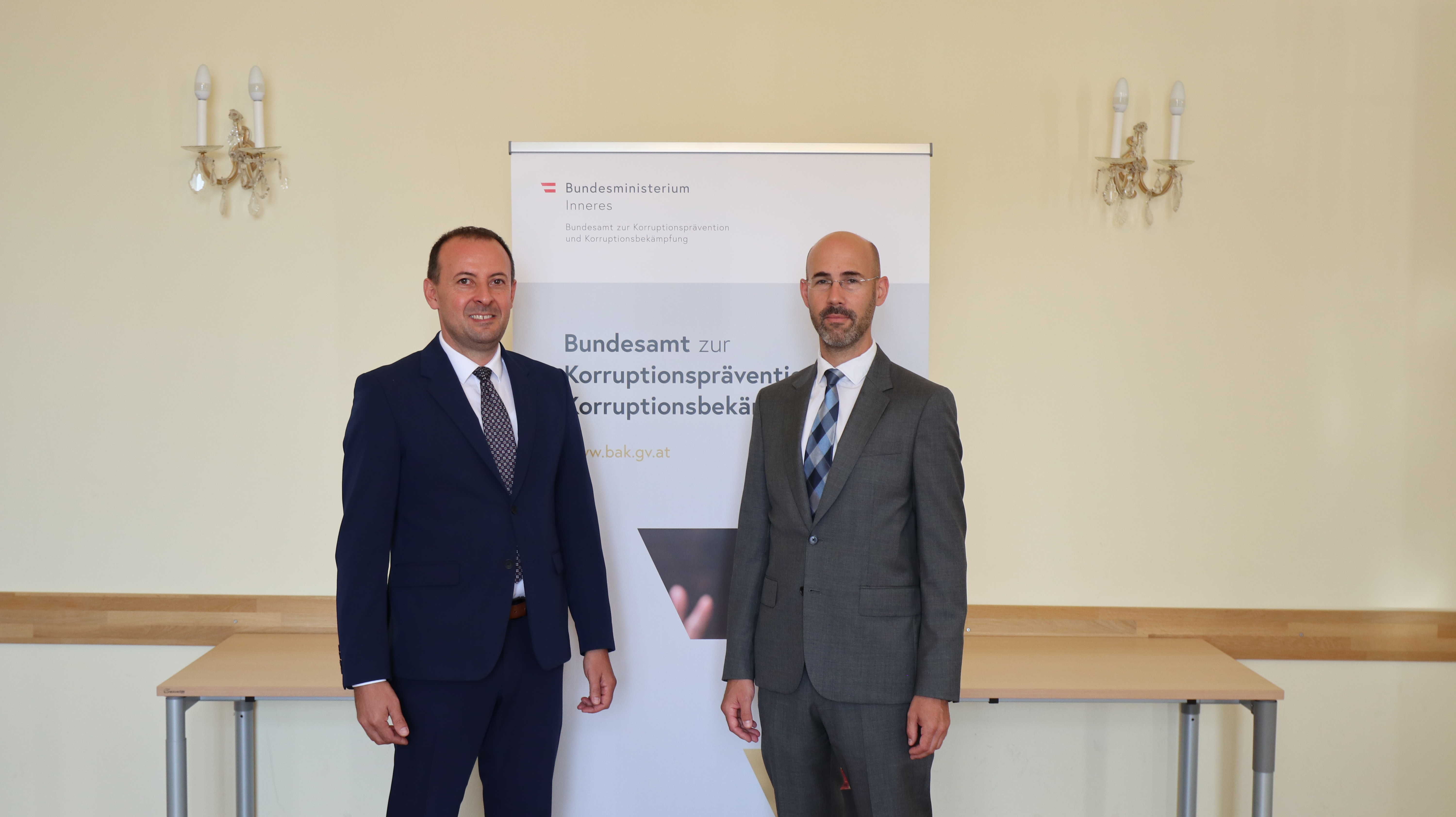 The visit of the Kosovar delegation to the BAK was organised jointly with the OSCE Mission in Kosovo and was themed "Strengthen the Rule of Law and Anti-Corruption Mechanisms in Kosovo". The Kosovar Agency for the Prevention of Corruption (AKP) was represented by its director and two heads of department, responsible for prevention and investigations. Furthermore, the Kosovar police liaison officer stationed in Austria and a representative of the OSCE Mission in Kosovo took part in the meeting.