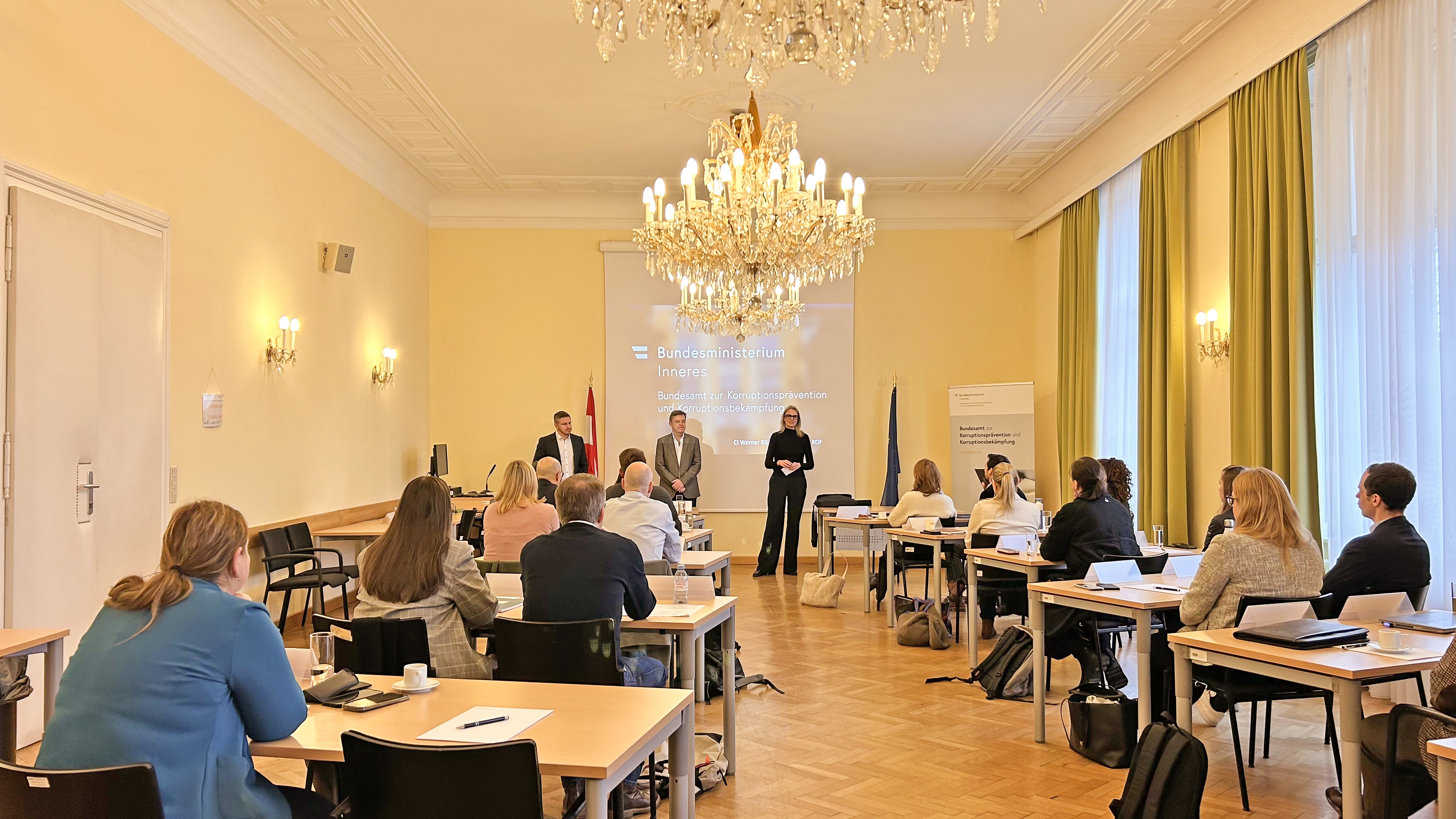 Im Rahmen des Lehrgangs "Erfolgreich.Führen – Reflektieren, Erkennen, Weiterentwickeln" der Sicherheitsakademie (SIAK) für alle Führungskräfte des Innenministeriums (BMI) bzw. der Landespolizeidirektionen (LPD) fand am 12. Februar 2026 ein Erweiterungsmodul (EWM) mit dem Titel "Anti-Korruption. Prävention und Ermittlungen" im Bundesamt zur Korruptionsprävention und Korruptionsbekämpfung (BAK) statt. Knapp 30 Personen nahmen am Modul teil.