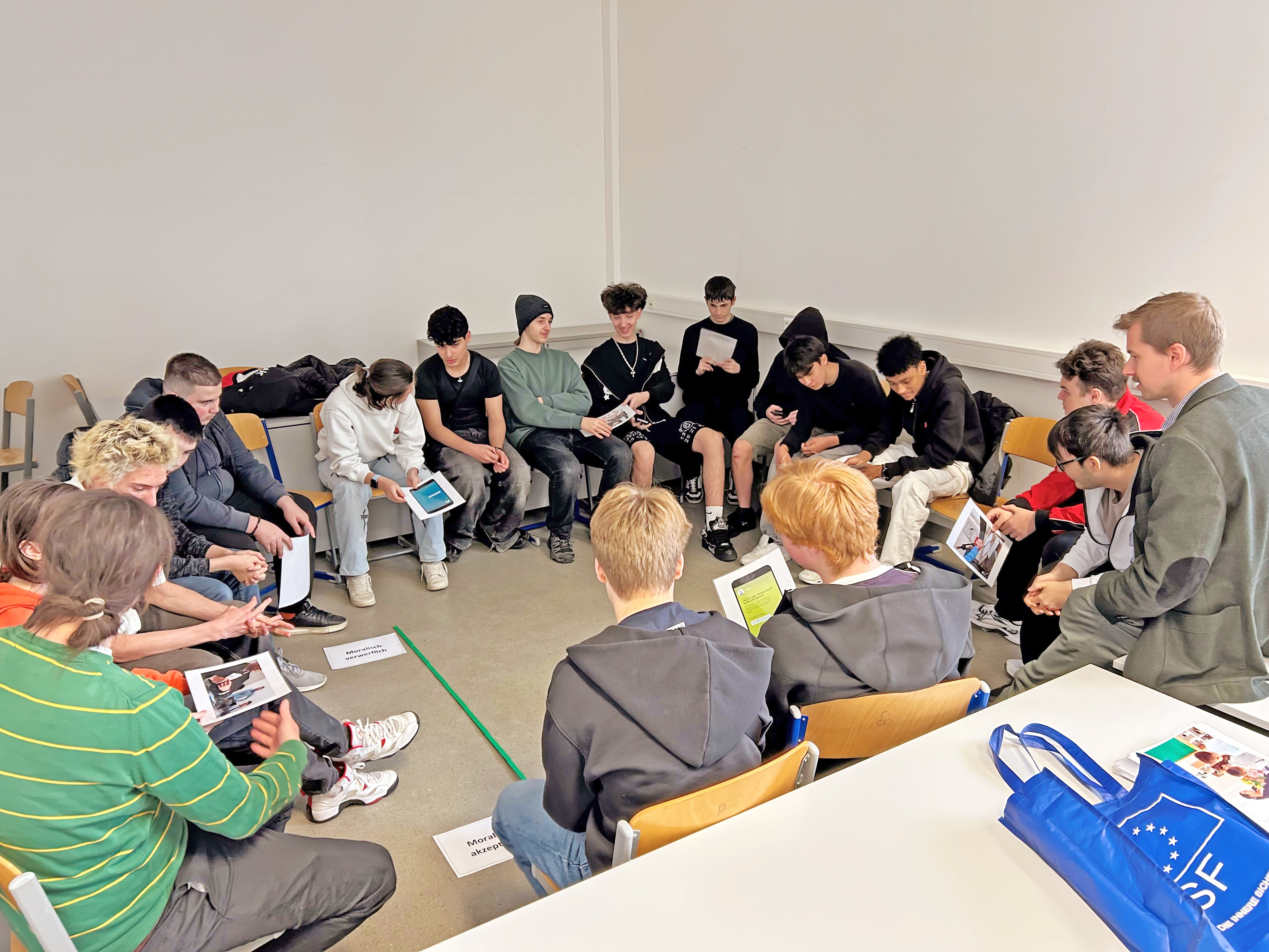 Durch interaktive Übungen wie die "Korruptionsskala" oder das "Korruptionstheater" wird das Thema Korruption greifbar und praxisnah vermittelt. Bei der "Korruptionsskala" ordnen sie verschiedene Bilder nach moralischer Fragwürdigkeit ein – von harmlos bis eindeutig korrupt. Im "Korruptionstheater" wird ein Bewerbungsgespräch simuliert, das in eine potenziell korrupte Entscheidung münden kann.