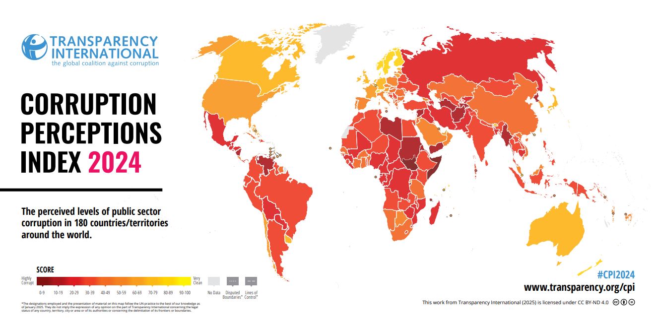 Die Nichtregierungsorganisation Transparency International listete Österreich in dem am 11. Februar 2025 veröffentlichten Korruptionswahrnehmungsindex (CPI) auf den 25. Platz von insgesamt 180 teilnehmenden Ländern.