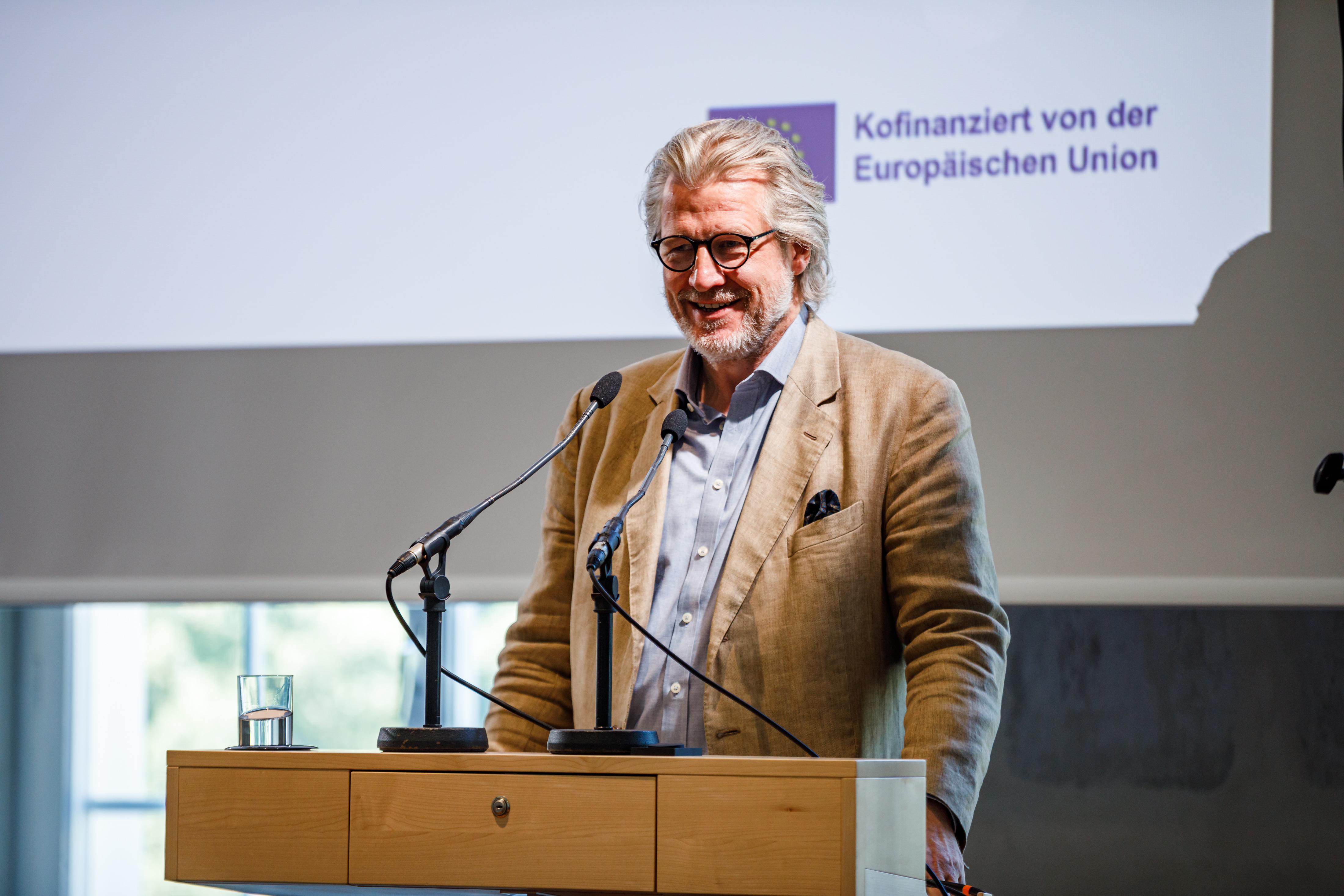 Eher kritisch setzte sich Philipp Blom, Autor, Historiker und Journalist, in seiner Keynote mit dem Thema auseinander. Unter dem Titel "Die Geister, die ich rief. Künstliche Intelligenz und Gesellschaft." wies er darauf hin, vor welche Herausforderungen Künstliche Intelligenz die Gesellschaft stellen könne: "Die Revolution der künstlichen Intelligenz verändert unsere Gesellschaften, denn sie schafft eine neue Kategorie: intelligente Dinge. Das revolutioniert nicht nur menschliche Arbeit, sondern auch soziale Beziehungen, persönliche Wahrnehmungen und Weltsichten. Ob das kompatibel ist mit der Demokratie als Forum mündiger, informierter Bürgerinnen und Bürger kann nur die Geschichte zeigen."