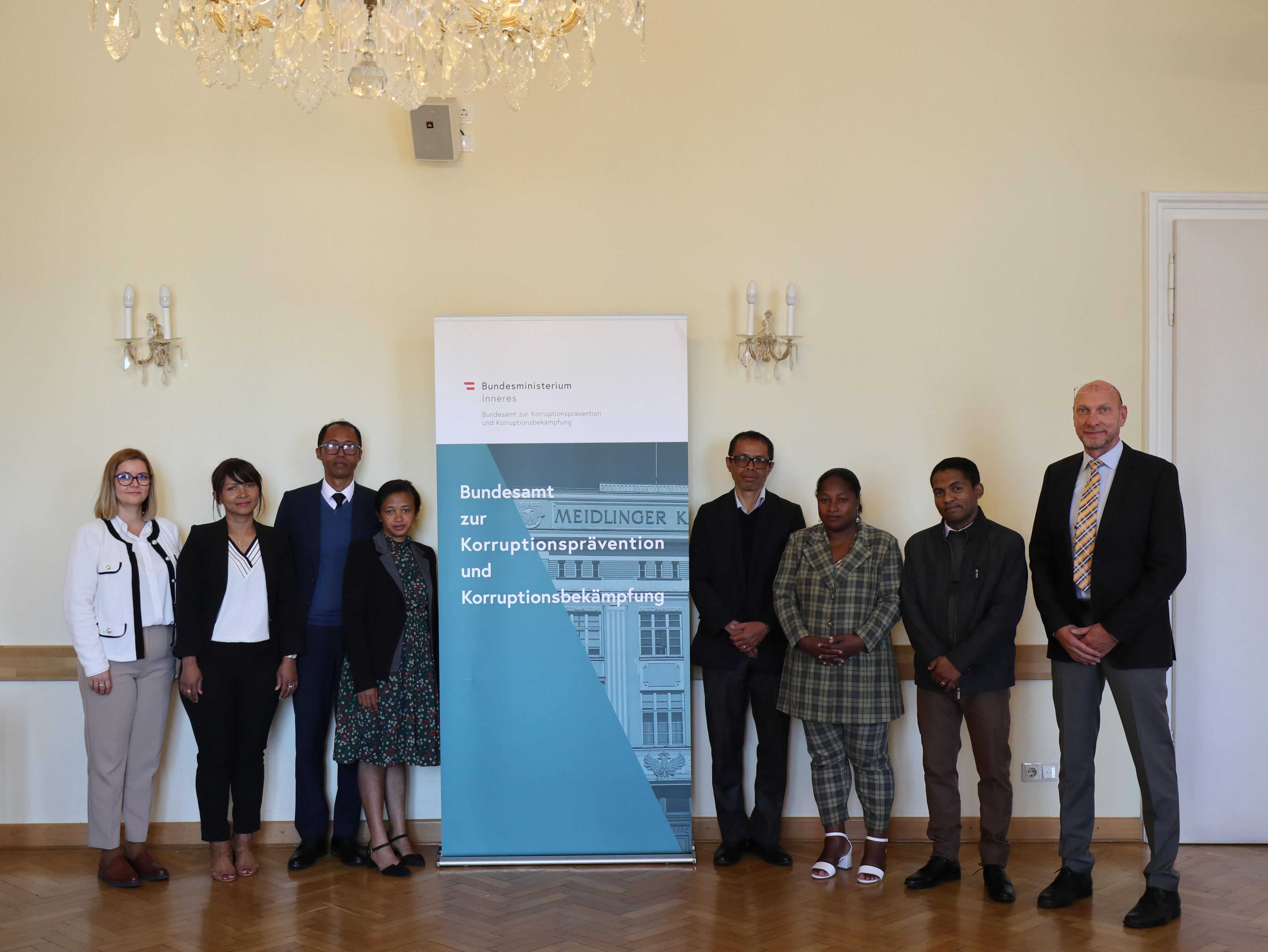 In Fortführung der Kooperation zwischen dem BAK und der Internationalen Anti-Korruptionsakademie (IACA) mit Sitz in Laxenburg fand der Besuch der madagassischen Delegation zum gegenseitigen Erfahrungsaustausch sowie zur Unterstützung bei der Bewertung und Gestaltung der Nationalen Antikorruptionsstrategie für Madagaskar statt.